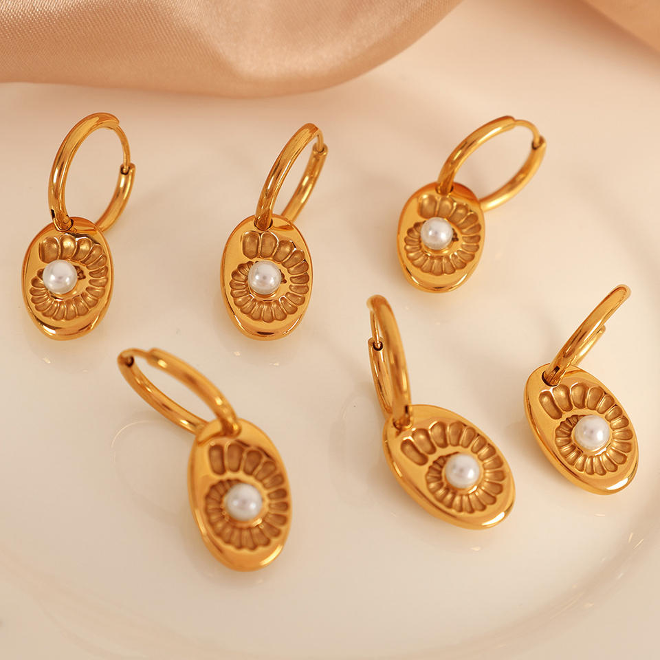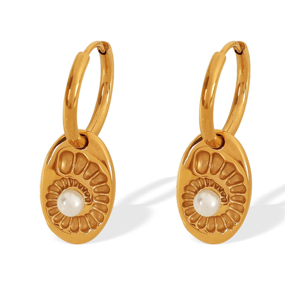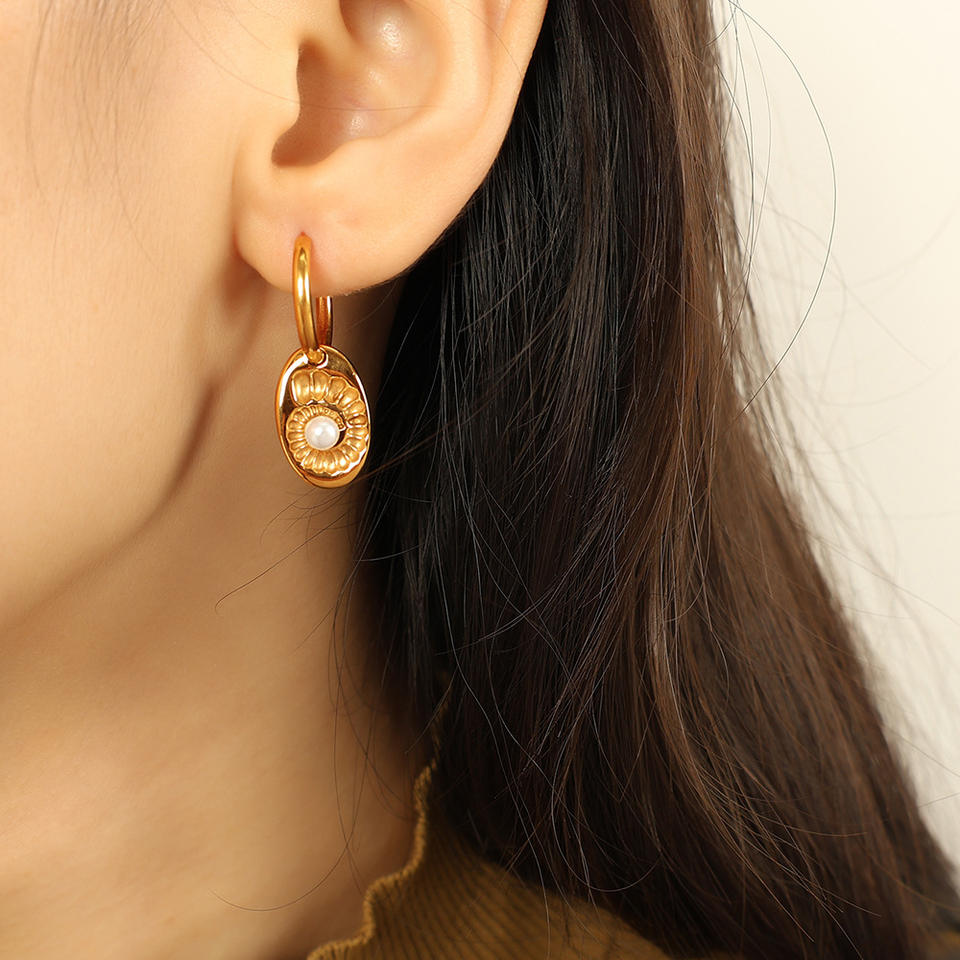 ต่างหูรูปทรงดอกไม้ประดับมุกสำหรับผู้หญิงสวมใส่ทุกวันสีทอง EH756WEG