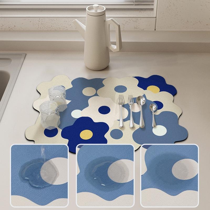 แผ่นรองกันน้ำรูปดอกไม้สำหรับอ่างล้างจาน ขนาด 30x40 ซม. 40x60 ซม. ผลิตจากโพลีเอสเตอร์ดูดซับน้ำได้ดี ดีไซน์ทันสมัย สำหรับใช้กับเคาน์เตอร์อ่างล้างจาน