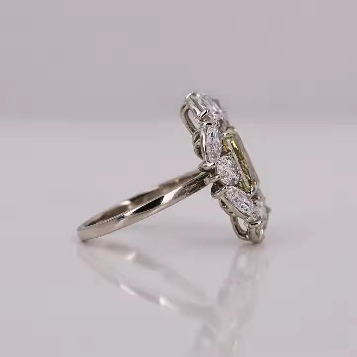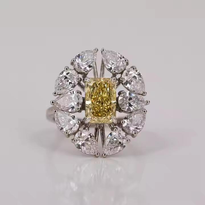 แหวนหมั้นเพชรสีทองประกายประกายเพชรรูปดอกไม้สีเหลืองสดใสของขวัญสุดหรูสำหรับผู้หญิง