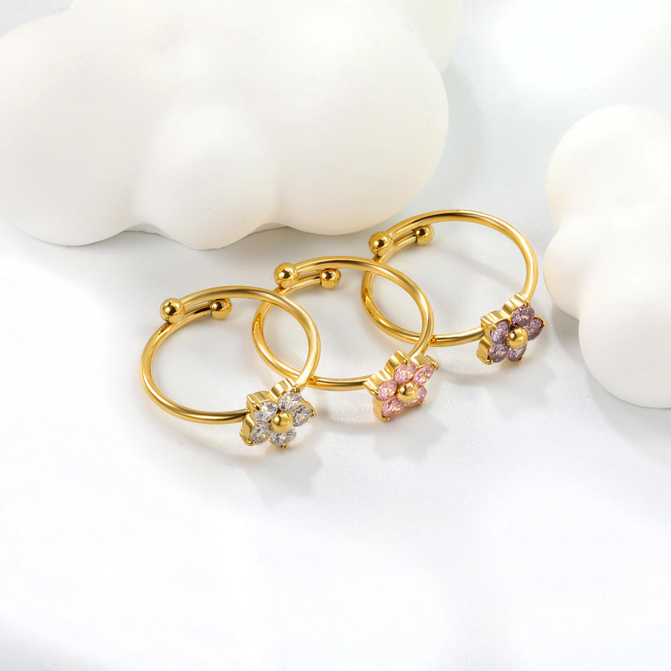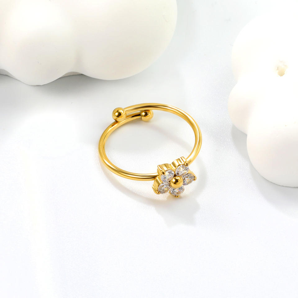 แหวนเปิดรูปดอกไม้ประดับเพชรซิคอน ชุบทอง 18k ทำจากสแตนเลสสตีล สำหรับผู้หญิง ของขวัญ เครื่องประดับ