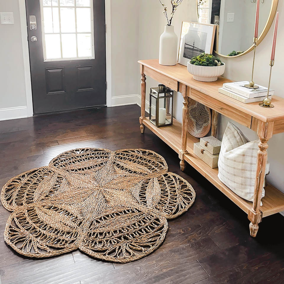Flower Shaped Flooring Mat Natural Carpet and Rugs Hand Woven Seagrass Sisal Carpet for Kitchen Living Room Decor