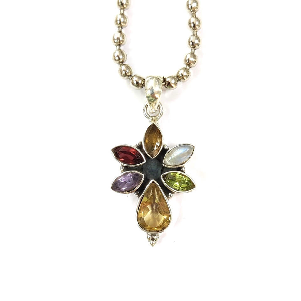 จี้รูปดอกไม้ประดับหินหลายชนิดแบบฝังขอบ น้ำหนัก 3.2 กรัม