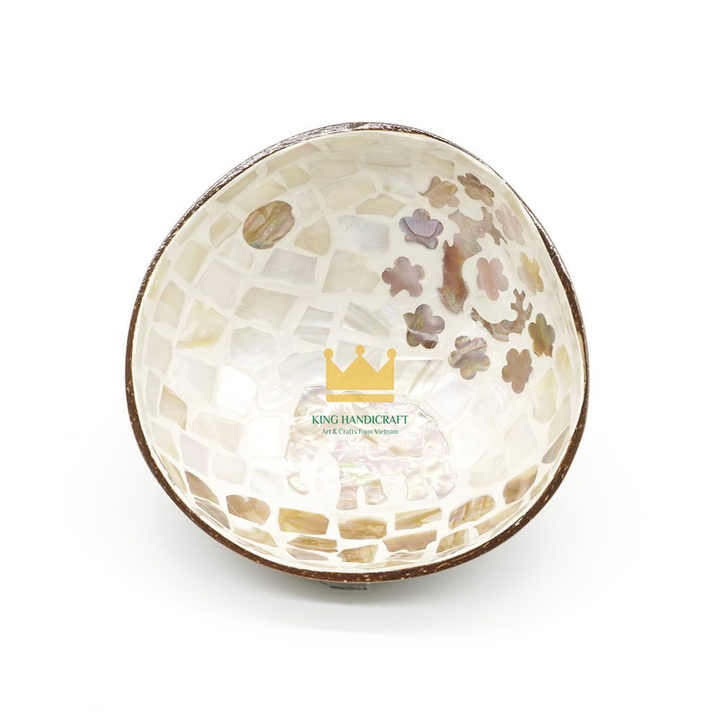ชามเสิร์ฟตกแต่งสไตล์เรียบหรู ทำจากไม้ฝังมุกเปลือกมะพร้าวธรรมชาติ รูปทรงดอกไม้ น้ำหนักเบา