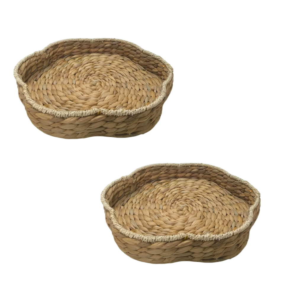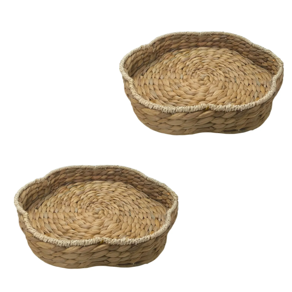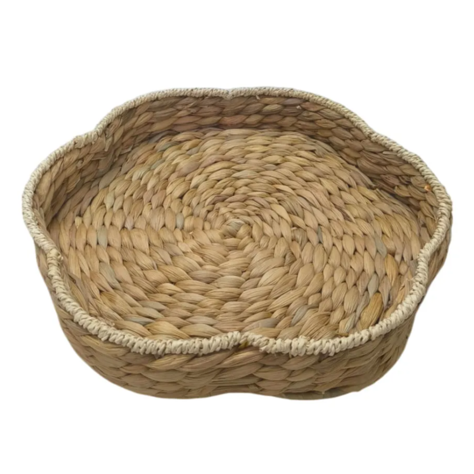 ถาดดอกไม้ทำจากผักตบชวา ขายส่งจากเวียดนาม ถาดเสิร์ฟลายดอกไม้ทำมือ ตะกร้าผลไม้สไตล์โบโฮ ของตกแต่งบ้าน งานฝีมือ