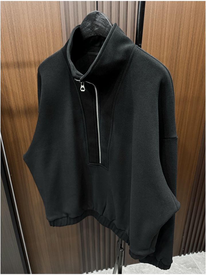 เสื้อสเวตเตอร์ผู้ชาย Flower Song รุ่นใหม่ประจำปี 2025 สำหรับฤดูใบไม้ร่วงและฤดูหนาว ทรงหลวม คอตั้ง ดีไซน์ตาข่าย สีพื้น คุณภาพสูง ปิดด้วยซิป
