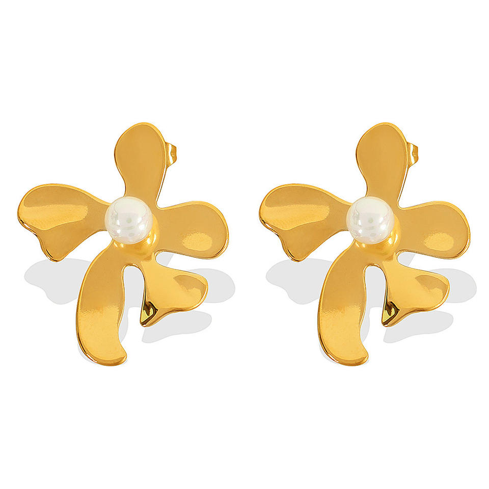 ต่างหูรูปดอกไม้ประดับมุกเทียมแบบฝังขอบทองและเงินสำหรับใส่ทุกวัน