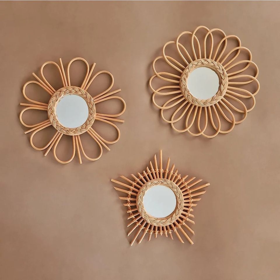 กรอบกระจกหวายสไตล์ดอกไม้ที่ทันสมัยสำหรับการตกแต่งภายในแบบเรียบง่ายและแบบบ้านไร่แขวนผนัง