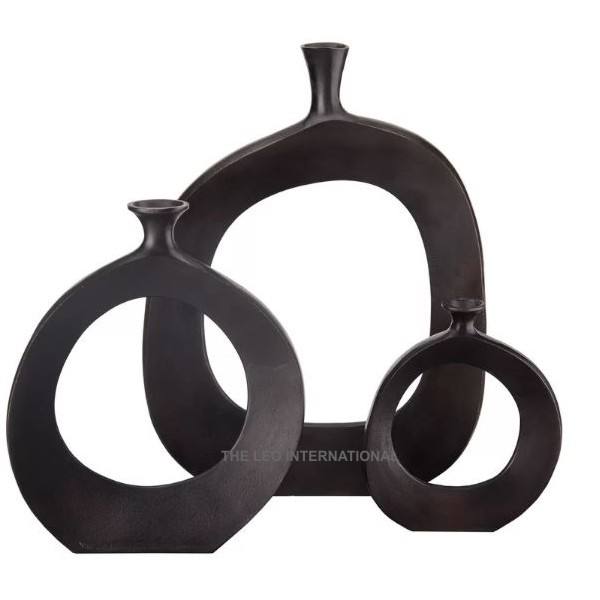 แจกันดอกไม้สีดำตรงกลางทำจากโลหะอลูมิเนียมแจกันทรงแจกันสวยงามทันสมัยสำหรับบ้านในร่มและกลางแจ้ง