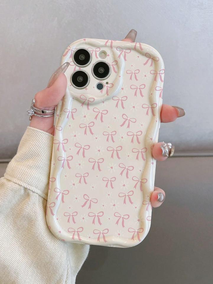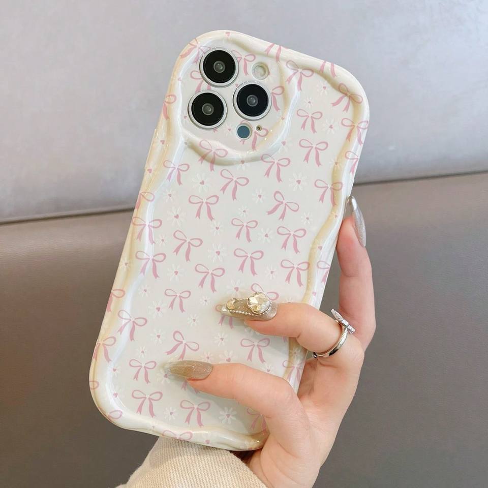 เคสผูกโบว์ดอกไม้เหมาะสำหรับ iPhone 17 Pro Max, 16 Pro, 15ครีมเคสกันกระแทก