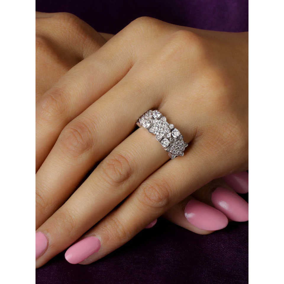 แหวนเงินวินเทจลายดอกไม้ตะวันออก ชุบโรเดียม ประดับเพชรซิคอนสีขาว เทคโนโลยีฝังแพลตตินั่ม งานละเอียดสำหรับงานแต่งงาน