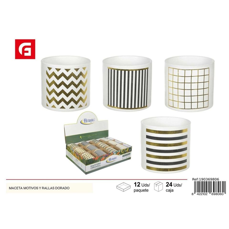 Flowerpot with golden motifs and stripes - Elegance in gardening