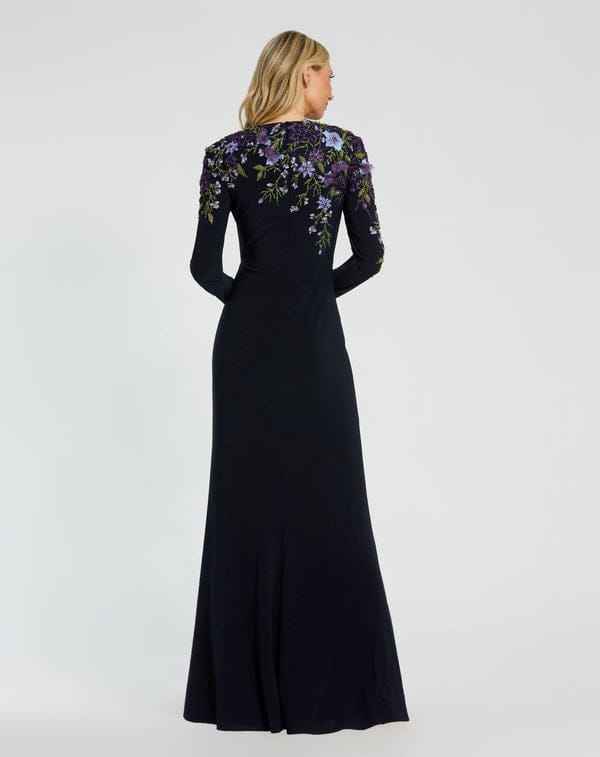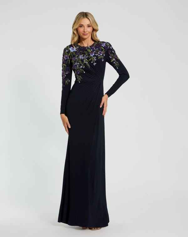 ชุดราตรียาวถึงพื้นระบายอากาศได้ดีปักด้วยมือประดับลูกปัดลายดอกไม้แขนยาวไซส์ใหญ่พิเศษสวมใส่ได้อย่างสง่างาม