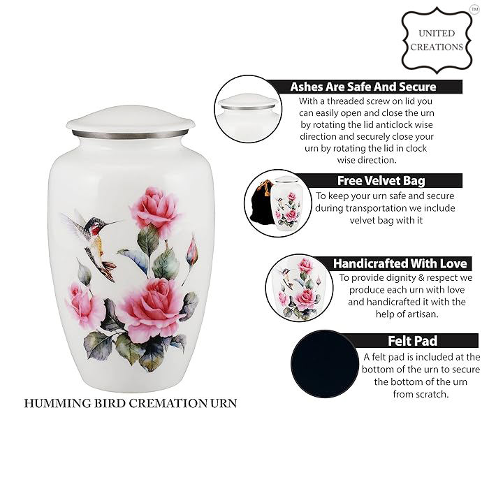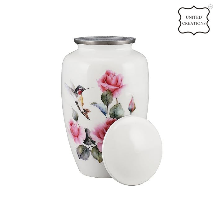 ดอกไม้พิมพ์สีขาวสีอากาศแน่นสแตนเลสเผาไหม้ Urn โกศที่ระลึกสําหรับเถ้า
