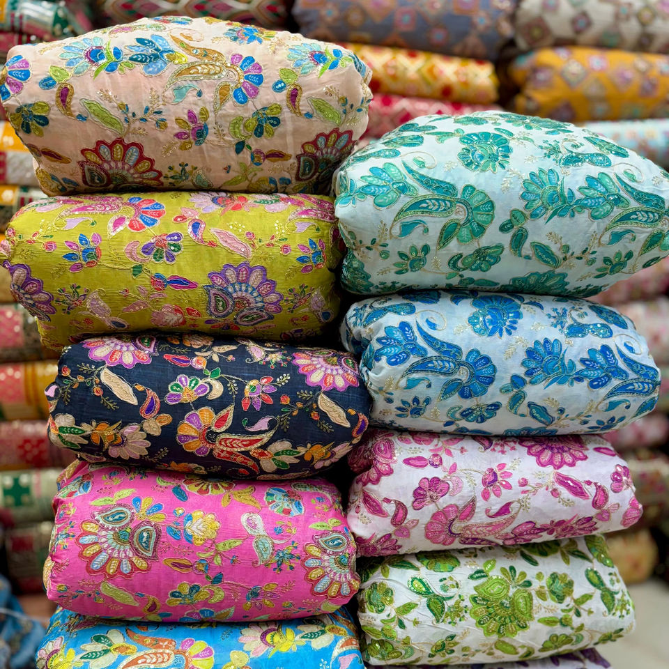 ผ้าโพลีชิออนปักลายดอกไม้ระบายอากาศได้ดีผ้าสำหรับแม็กซี่เดรสทำผ้าคลุมไหล่ออกแบบได้ตามสบายน้ำหนักปานกลาง