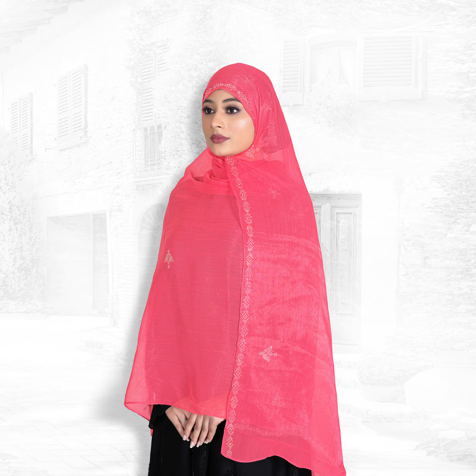 ผ้าคลุมศีรษะชีฟองพลิ้วไหว ประดับด้วยคริสตัล พร้อมขอบเรียบ สำหรับฤดูหนาวและลุคเรียบหรูในชีวิตประจำวัน