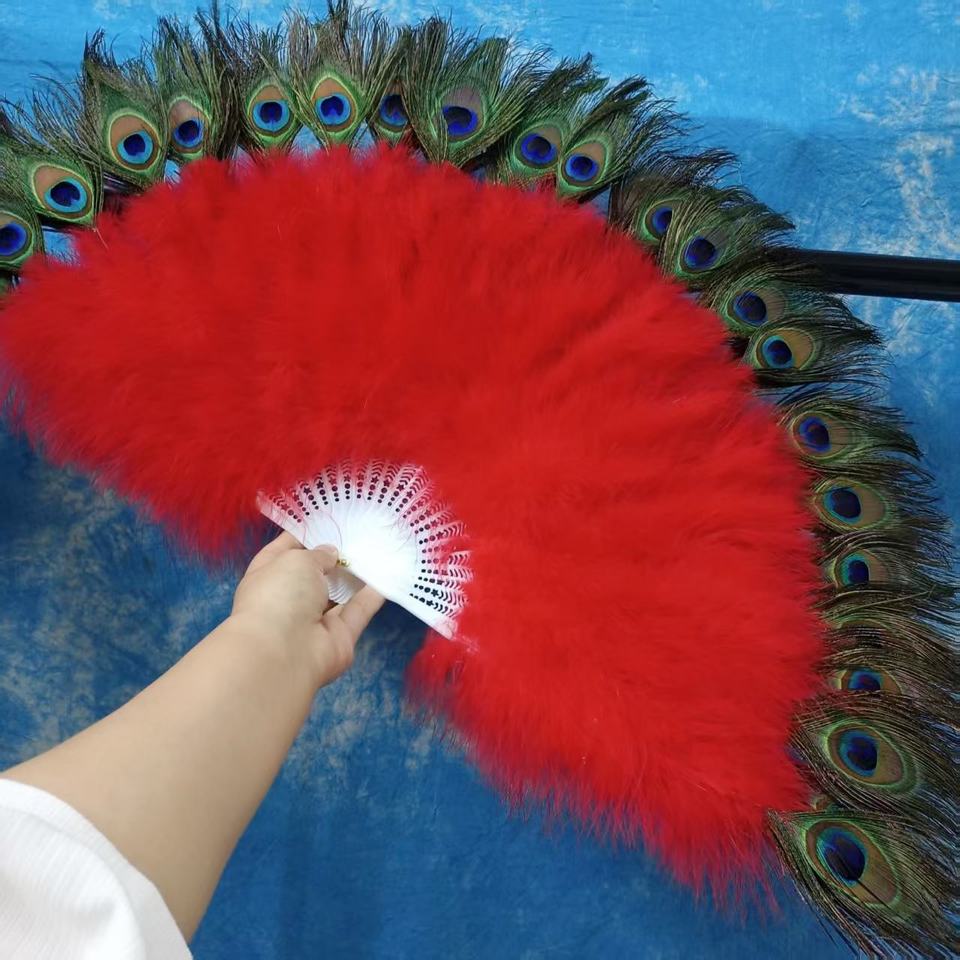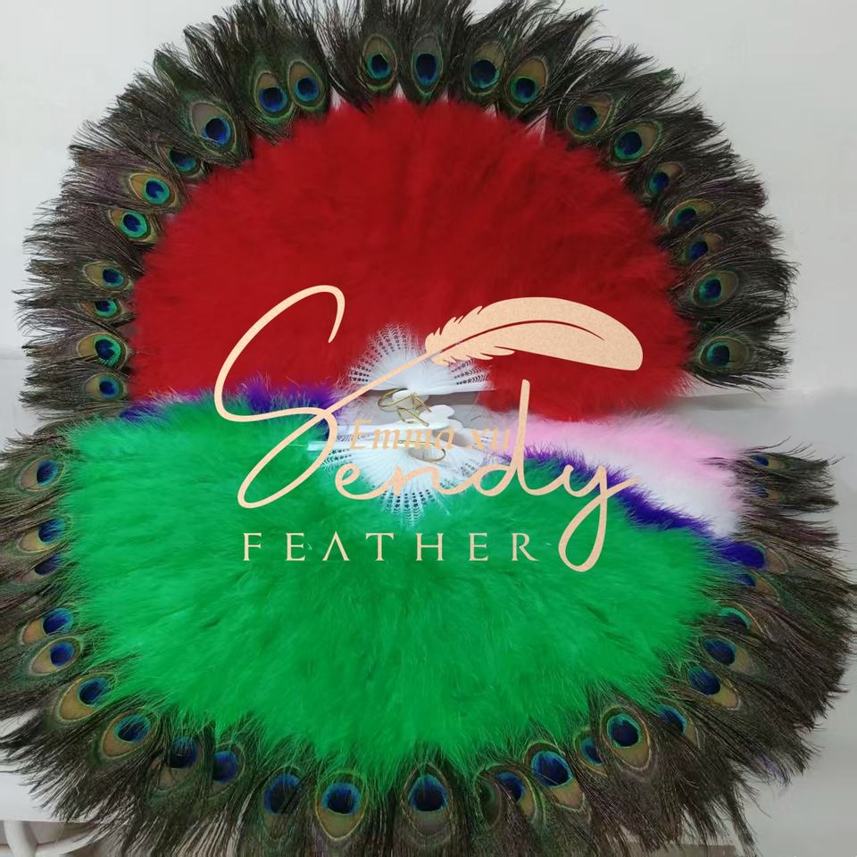 พัดทำมือขนนุ่มขนนกยูงสำหรับงานปาร์ตี้การแสดงบนเวทีงานแต่งงาน