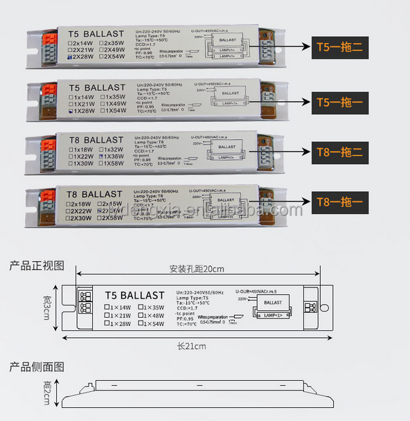 บัลลาสต์หลอดฟลูออเรสเซนต์ T5 T8 บัลลาสต์อิเล็กทรอนิกส์ 14w 21w 28w 35w 18w 30w 36w 58w ไดรเวอร์ FL 220v หรือ 110v