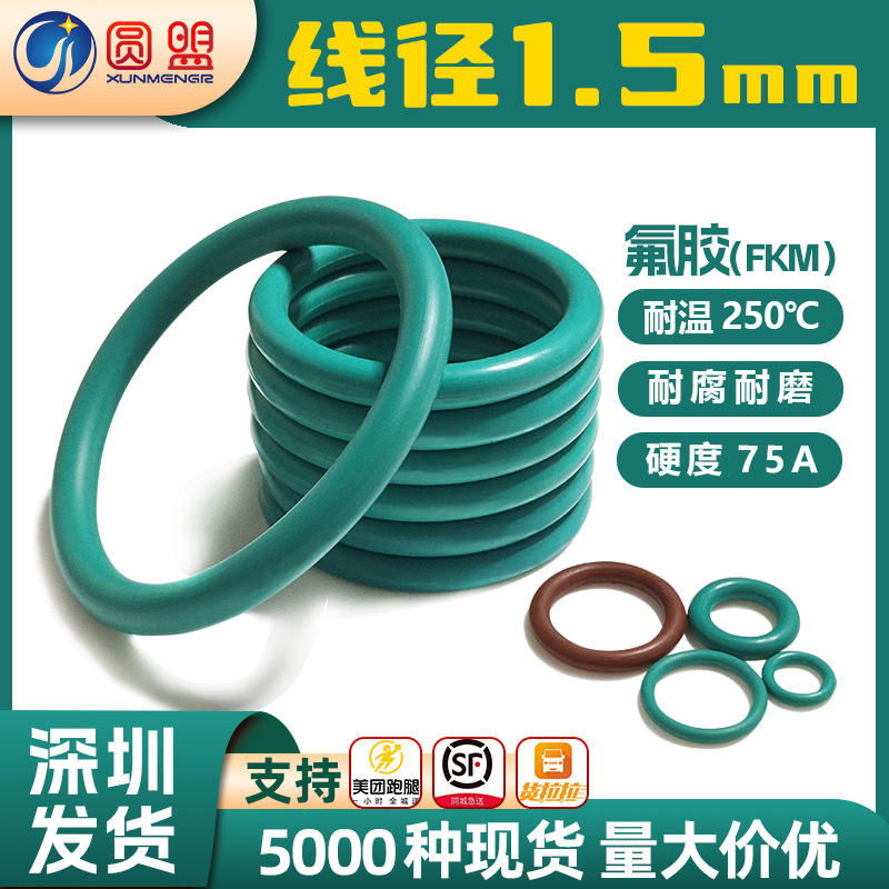 Fluororubber O-rings, wire diameter 1.5mm, outer diameter 5-30mm.