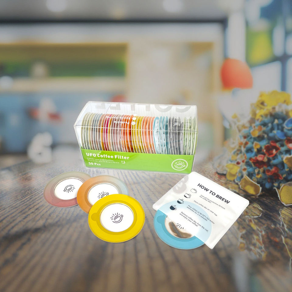 กระดาษกรองกาแฟแบบร่องสำหรับการชงแบบ Pour Over แบบพับสำเร็จรูป ถุงกรองกาแฟแบบเร็ว กระดาษกรองกาแฟแบบหยด ufo