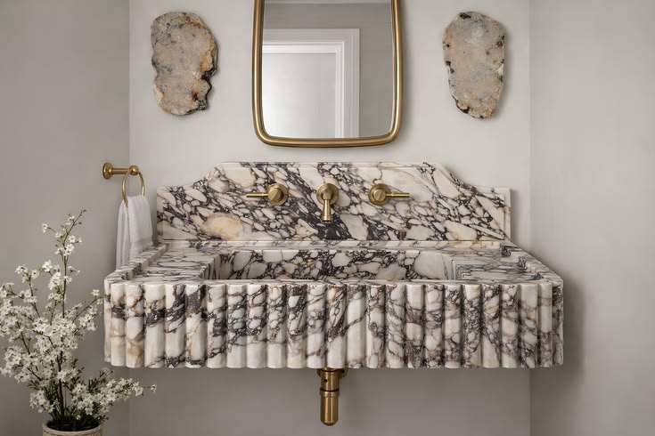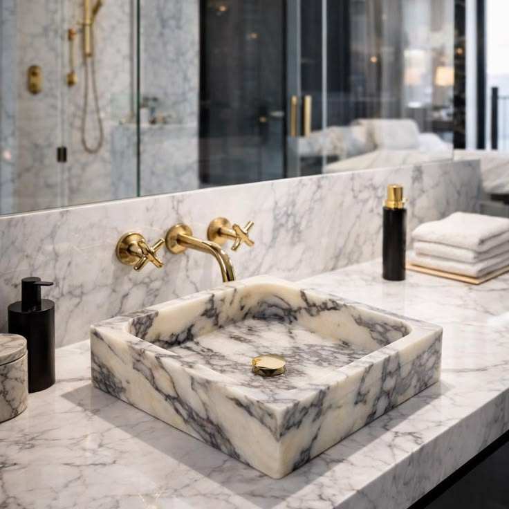 อ่างล้างหน้าหินอ่อน Calacatta Viola ขอบลายร่อง ดีไซน์ทันสมัย พร้อมที่ระบายน้ำ ความจุ 12 ลิตร สำหรับใช้ในคลังสินค้า