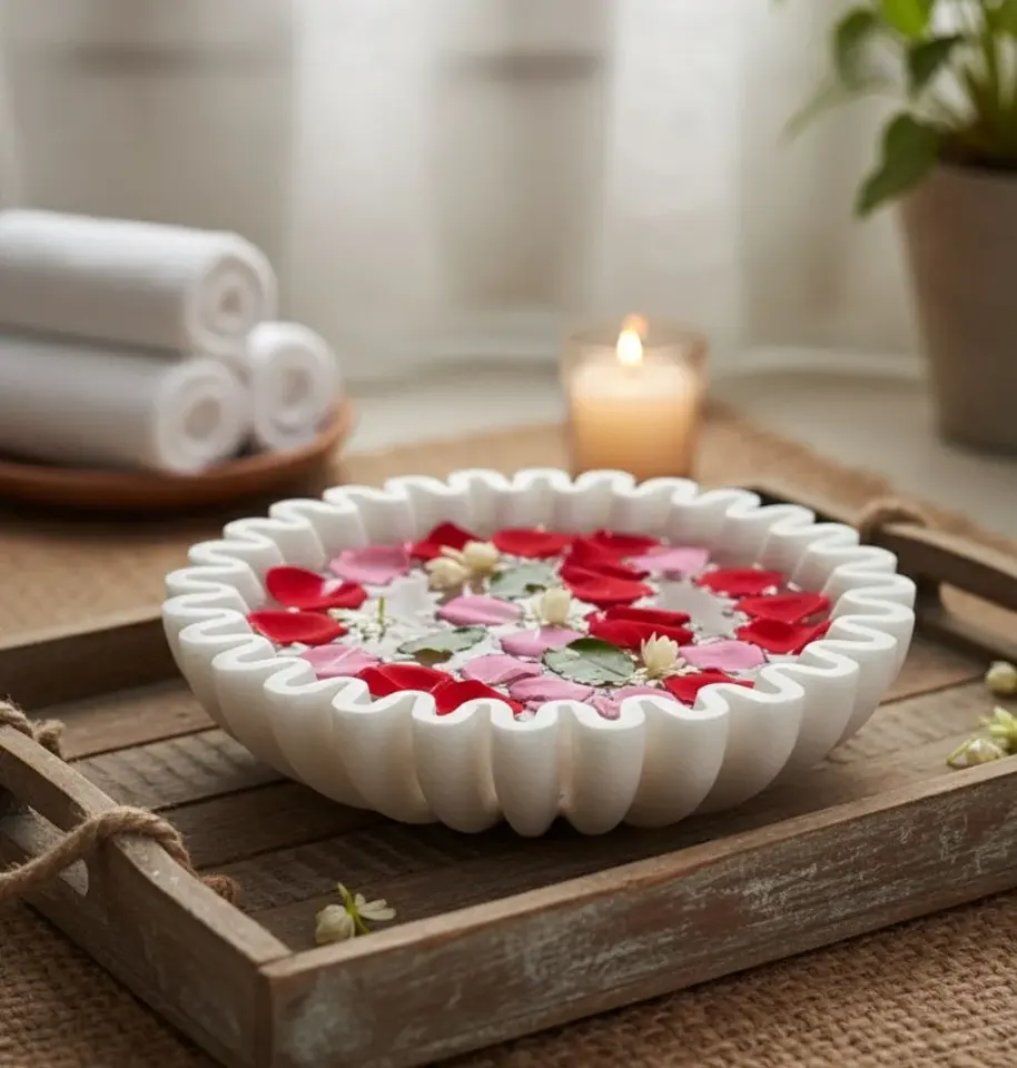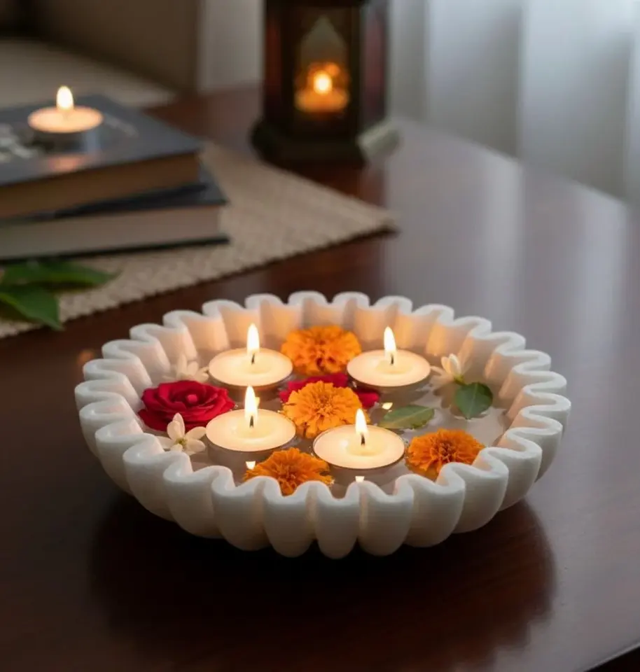 ชามหินอ่อนลายร่องขอบแกะสลัก ดีไซน์ร่วมสมัย งานแฮนด์เมด ขัดเงาเรียบเนียนสำหรับห้องนั่งเล่น