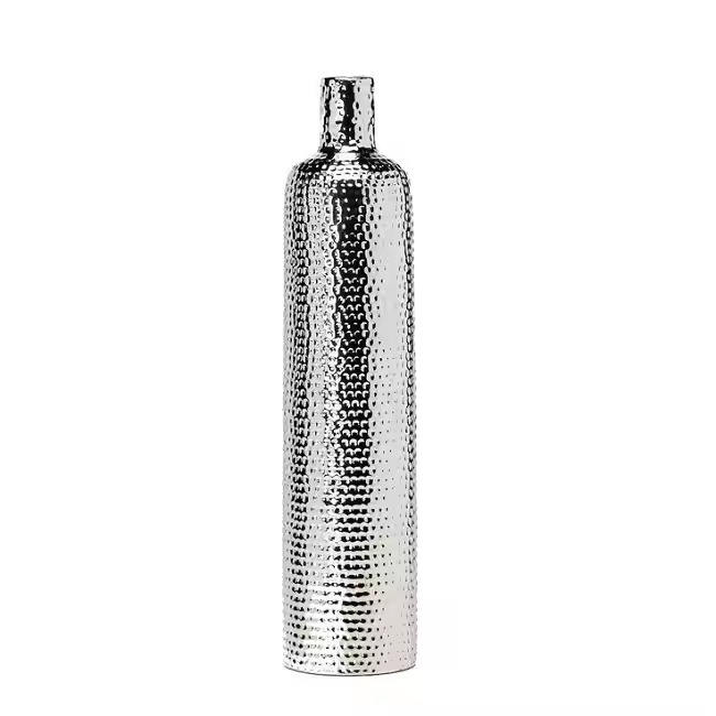 แจกันทรงสูงทำจากโลหะสีเงิน