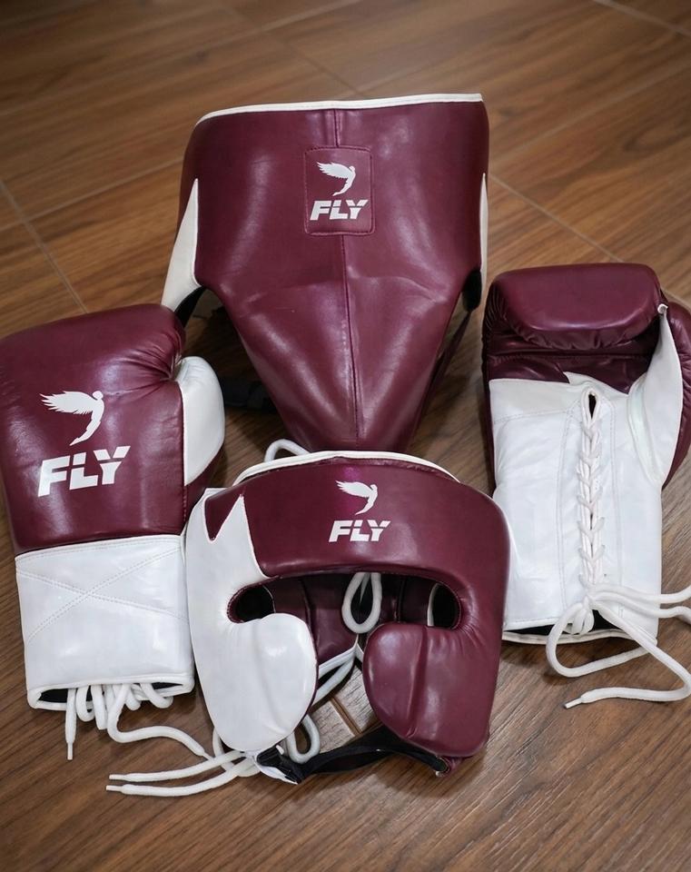 ชุดนวมชกมวย MMA Fly Superlace หนังวัวแท้สั่งทำพิเศษ พร้อมอุปกรณ์ป้องกันศีรษะและอุปกรณ์ป้องกันอวัยวะเพศชาย ระบายอากาศได้ดี สีส้มขาว