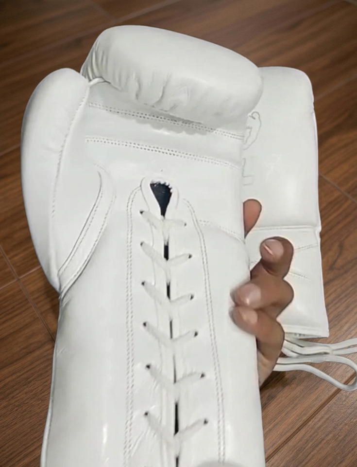 ถุงมือชกมวยหนังวัวแท้ Fly Superlace Pro X 2 รุ่นสั่งทำพิเศษ พร้อมที่จับมือและดีไซน์แบบเต็มนิ้ว - สีขาว