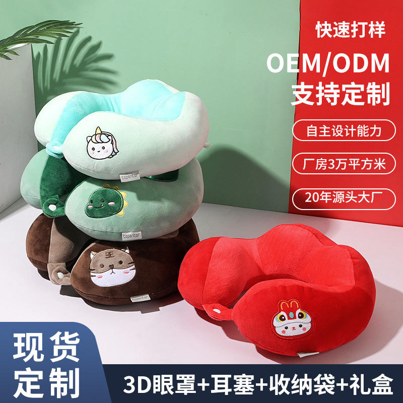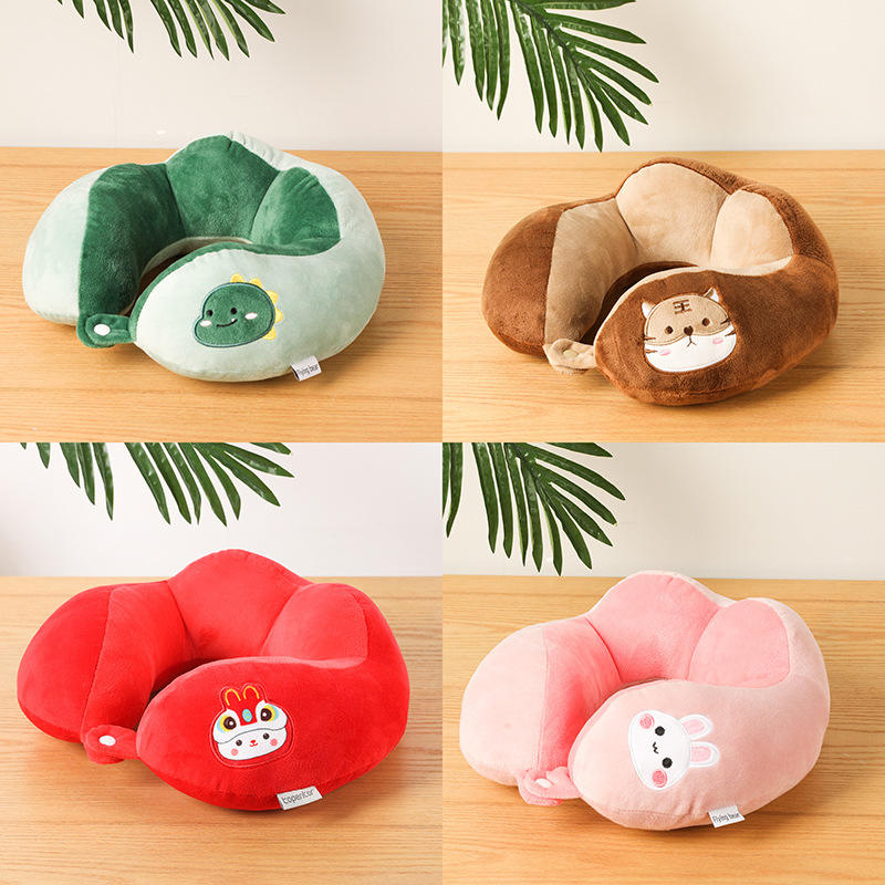 หมอนรองคอไดโนเสาร์รูปหมีบินได้ หมอนรองคอรูปตัวยูแบบพกพาสำหรับเดินทาง 28x26x14 ซม. หมอนรองคอปักลายน่ารัก