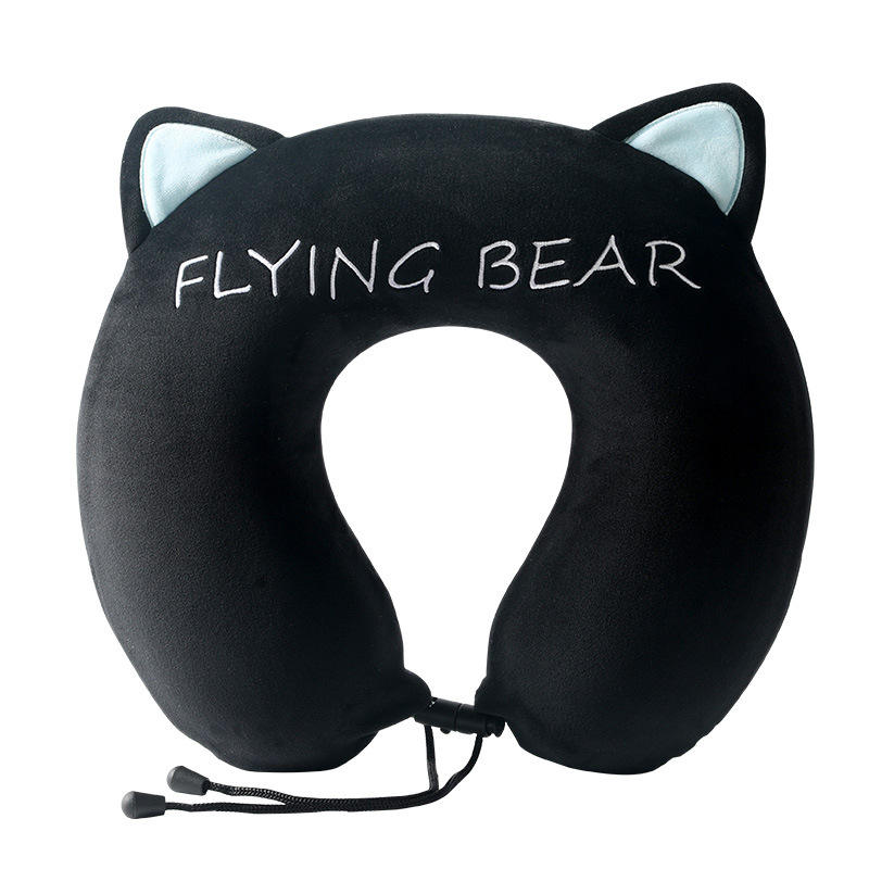 หมอนรองคอรูปตัวยู Flying Bear Memory Foam ลายหูแมวสีดำ หมอนพกพาสำหรับเดินทางบนเครื่องบิน ใช้ในออฟฟิศ หรือนอนกลางวัน
