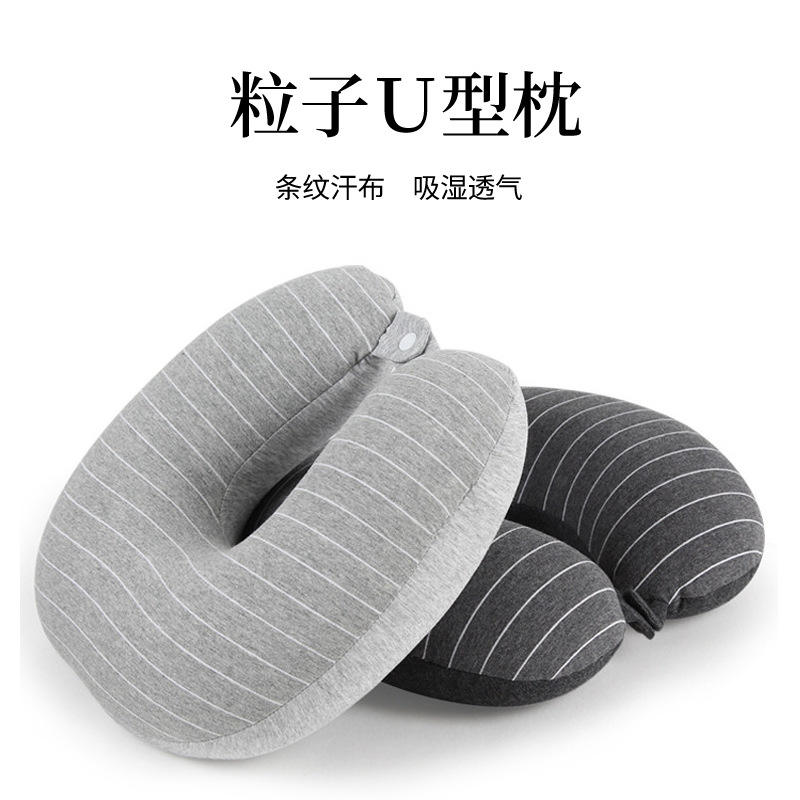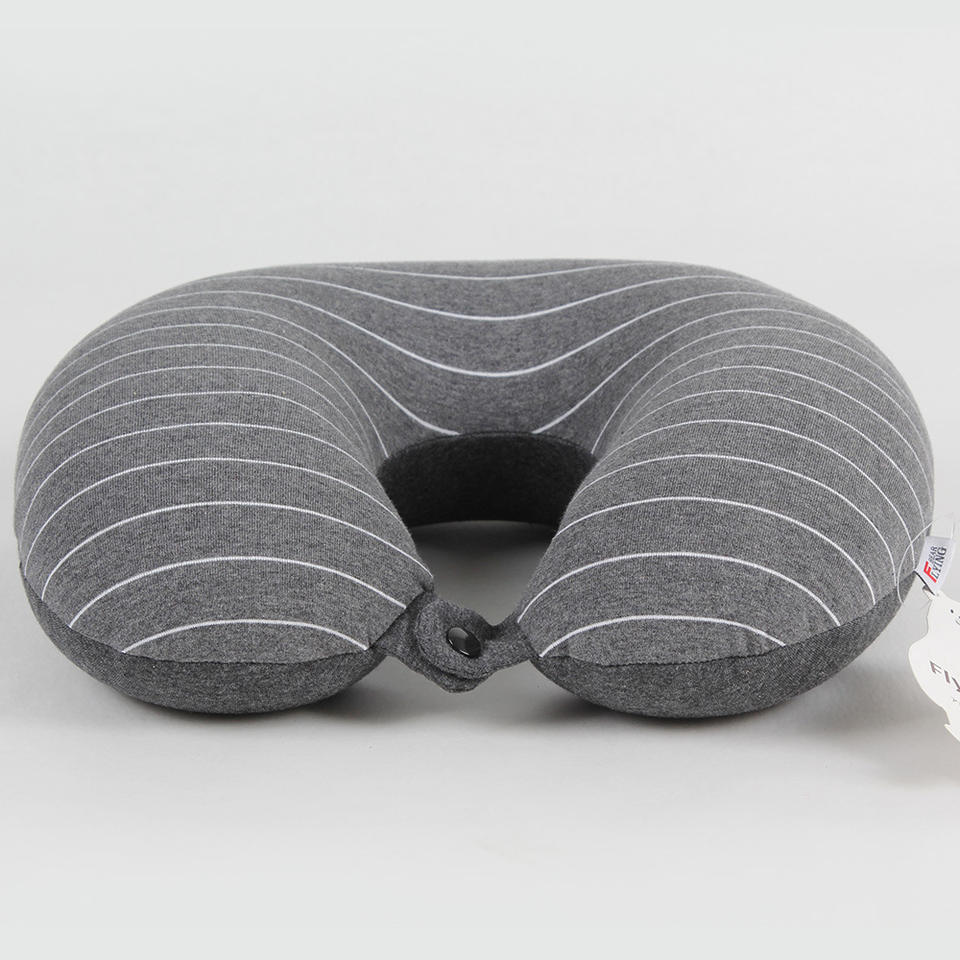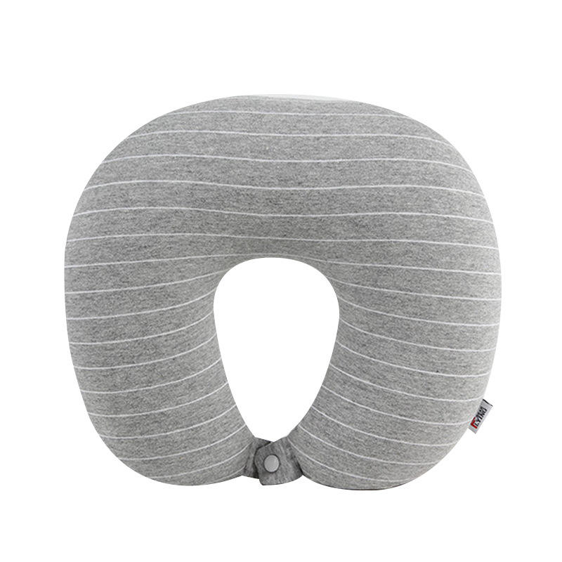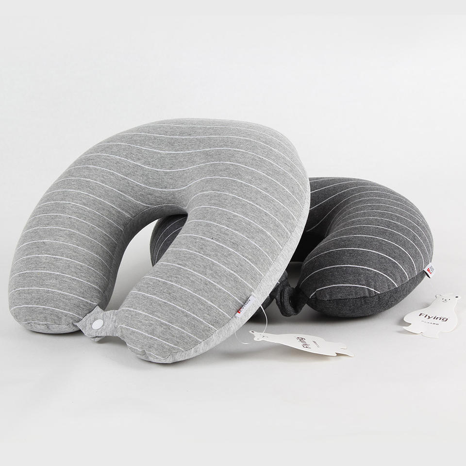 หมอนรองคอรูปตัวยู Flying Bear ขนาด 28x26x14 ซม. หมอนรองคอแบบพกพาสำหรับเดินทาง สีเทาอ่อนลายทาง ผ้าเจอร์ซีย์ สำหรับผู้ใหญ่