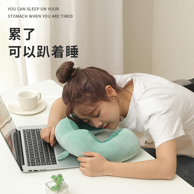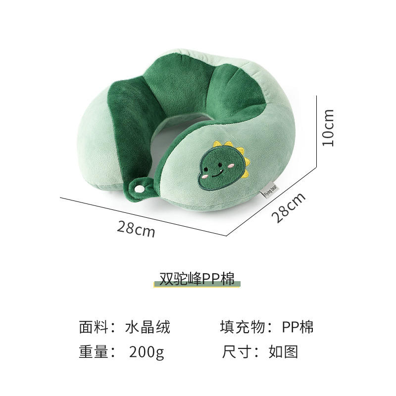 หมอนรองคอรูปตัวยู Flying Bear ลายไดโนเสาร์สีเขียว ปักด้วยผ้าฝ้าย PP สำหรับเดินทาง ใช้ในออฟฟิศ รองรับได้ทุกเพศ