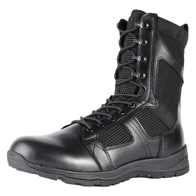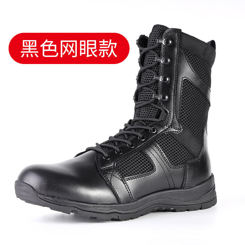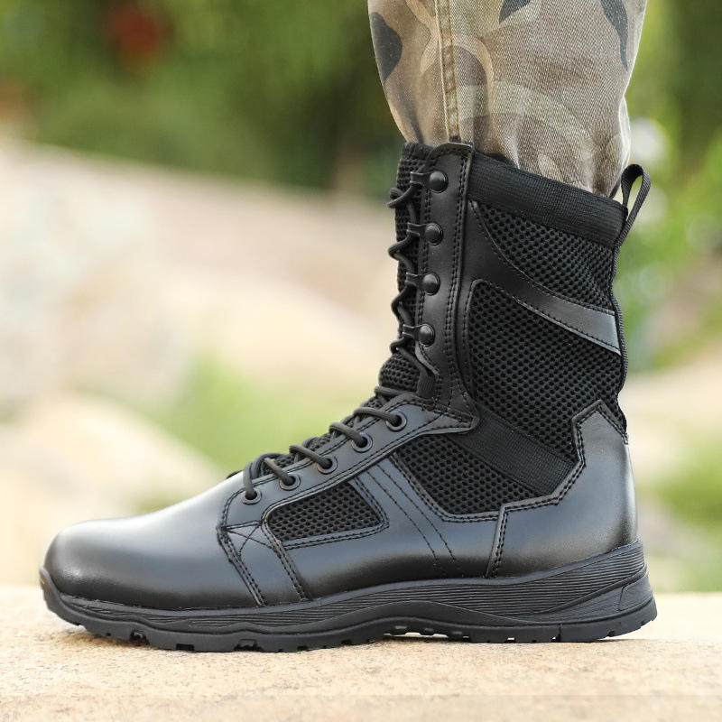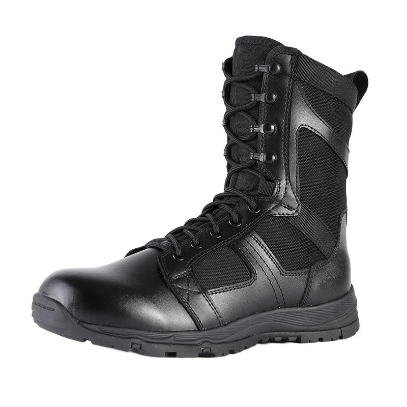 รองเท้าบูท Flying Fish Tactical สีดำ แบบหุ้มข้อสูง หนังเย็บต่อกัน กันลื่น สำหรับฝึกซ้อมรบและกิจกรรมกลางแจ้ง รองเท้าบูทผู้ชาย ส้นเตี้ย แบบมาตรฐาน