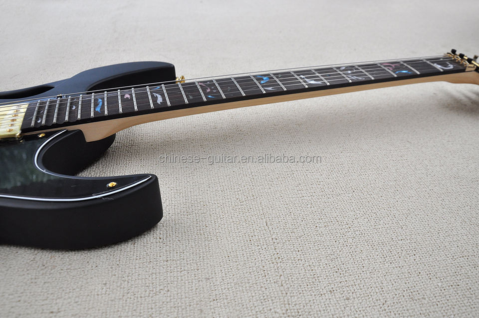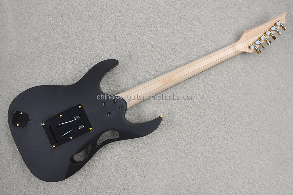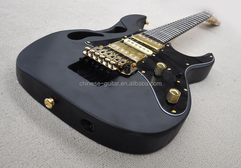 กีตาร์ไฟฟ้า Flyoung สีดำด้าน พร้อม Floyd Rose Bridge ฮาร์ดแวร์สีทอง ฟิงเกอร์บอร์ดไม้โรสวูด ผลิตตามสั่ง
