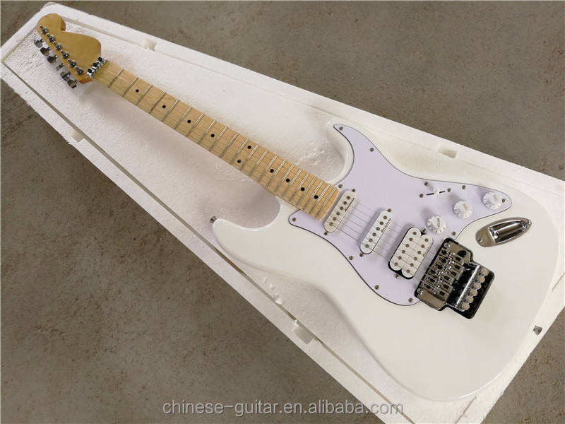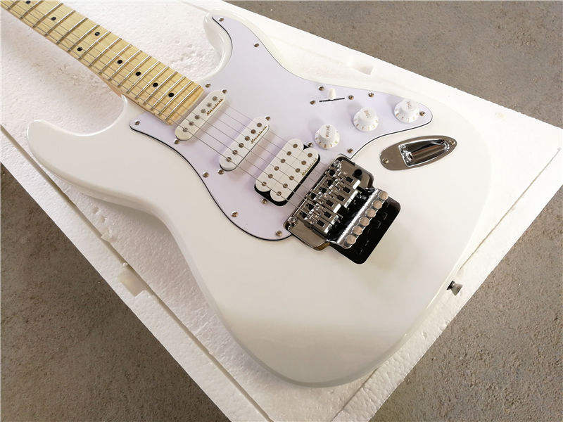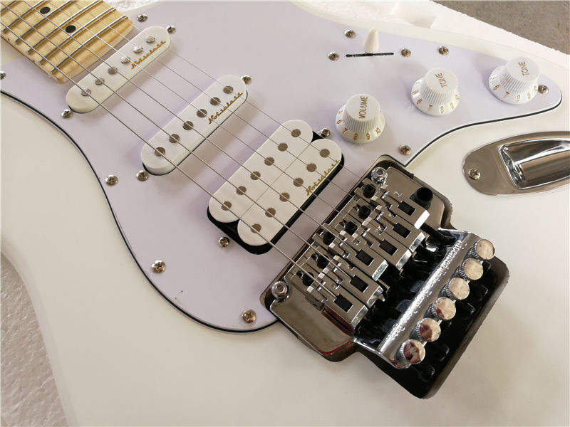 กีตาร์ไฟฟ้า Flyoung สีขาว ราคาถูก กีตาร์ไฟฟ้าพร้อมปิ๊กอัพ SSH บริดจ์ Floyd Rose