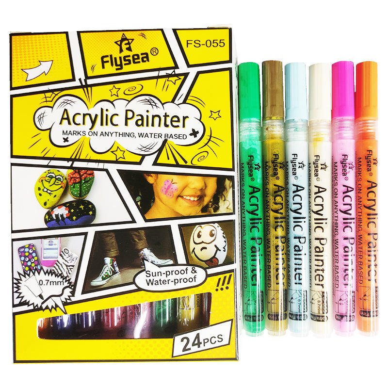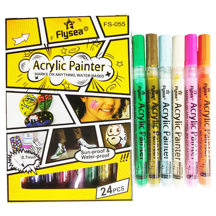 FLYSEA 0.7มม. ชุดปากกาอะคริลิค12สีสำหรับระบายสีกราฟฟิตีและปากกาวาดภาพระบายสี