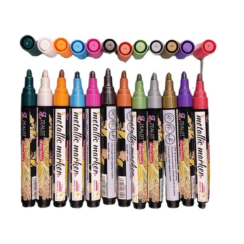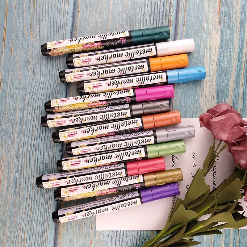 Flysea ชุดปากกามาร์กเกอร์โลหะ10สี,ปากกามาร์กเกอร์สีเมทาลิกแบบ Diy พิมพ์ลายและวาดน้ำ Baased