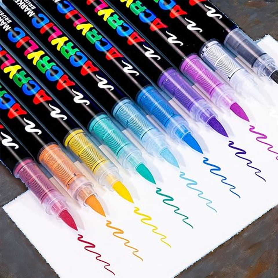 ปากกาสีอะคริลิค Flysea 12 สี หัวปากกาขนาด 0.5-5 มม. สำหรับงานประดิษฐ์และอุปกรณ์ศิลปะ