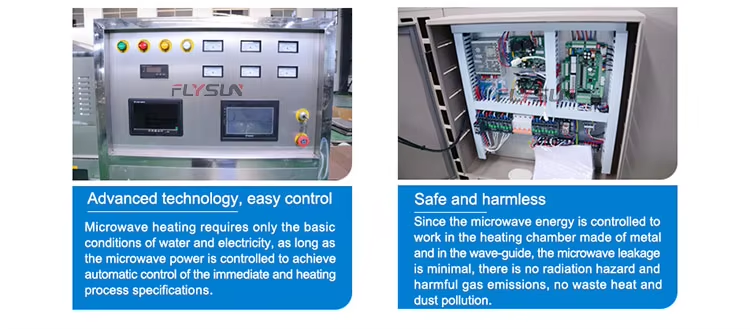 Flyshun เครื่องอบแห้งอาหารแบบใช้ไมโครเวฟเครื่องอบแห้งแบบอุโมงค์สำหรับสายพานลำเลียงกุ้ง