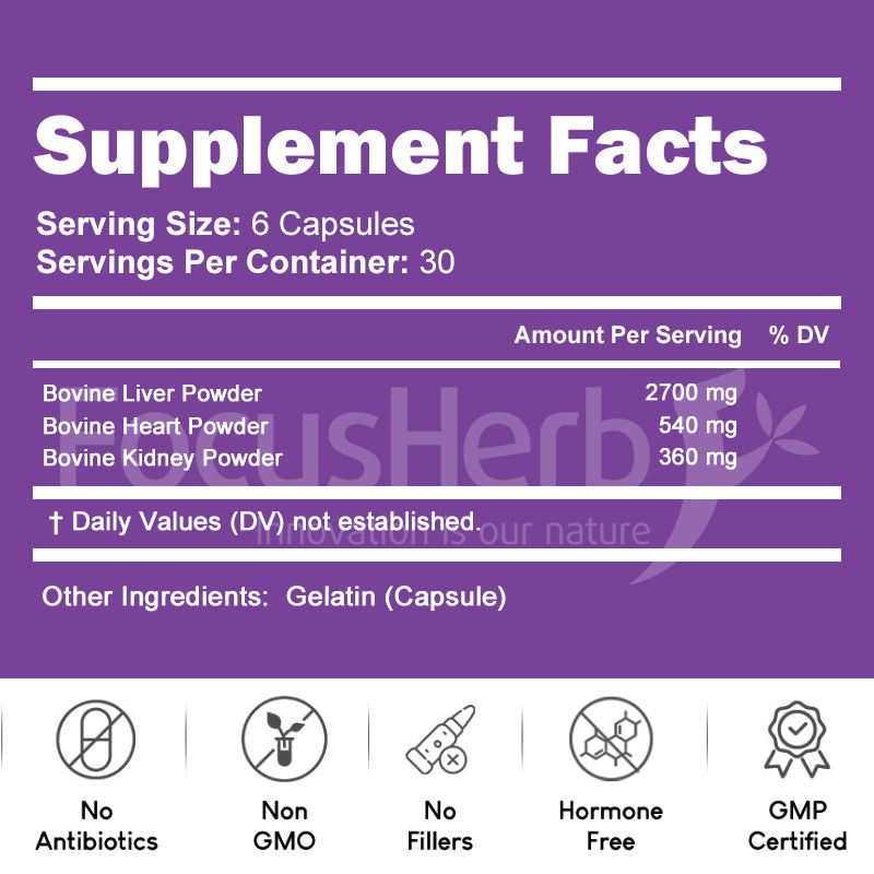 Focusherb แคปซูลเนื้อวัวตับหัวใจไตสำหรับผู้ใหญ่