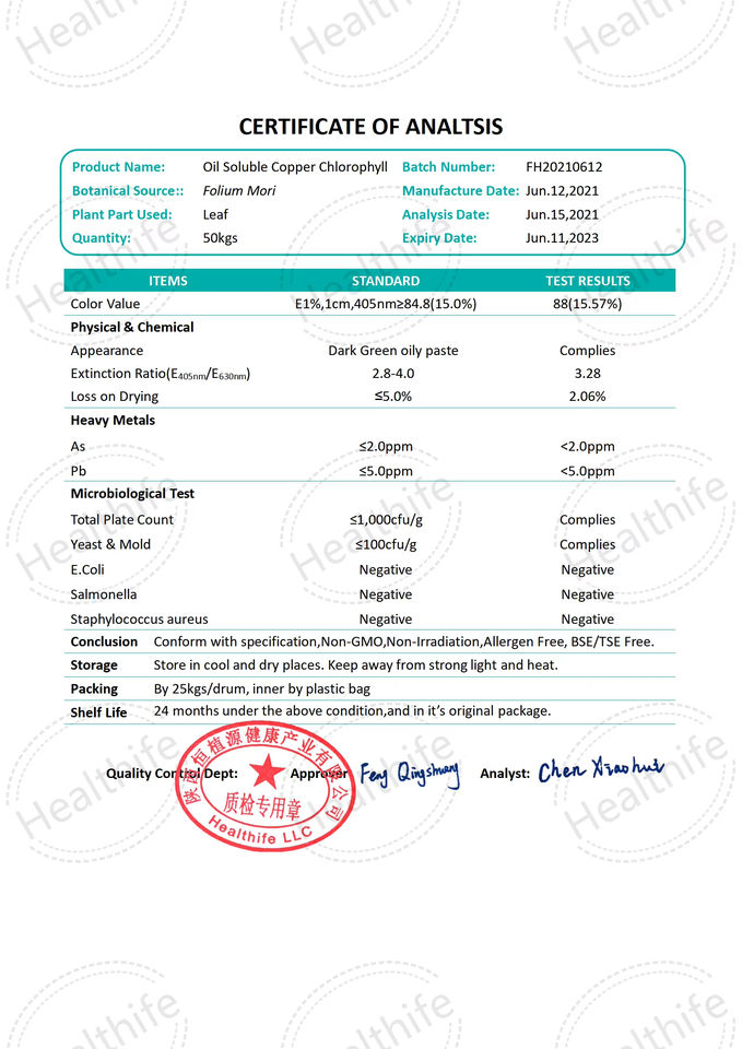 ชื่อสินค้า:ทองแดงคลอโรฟิลล์เหลว ละลายในน้ำมัน