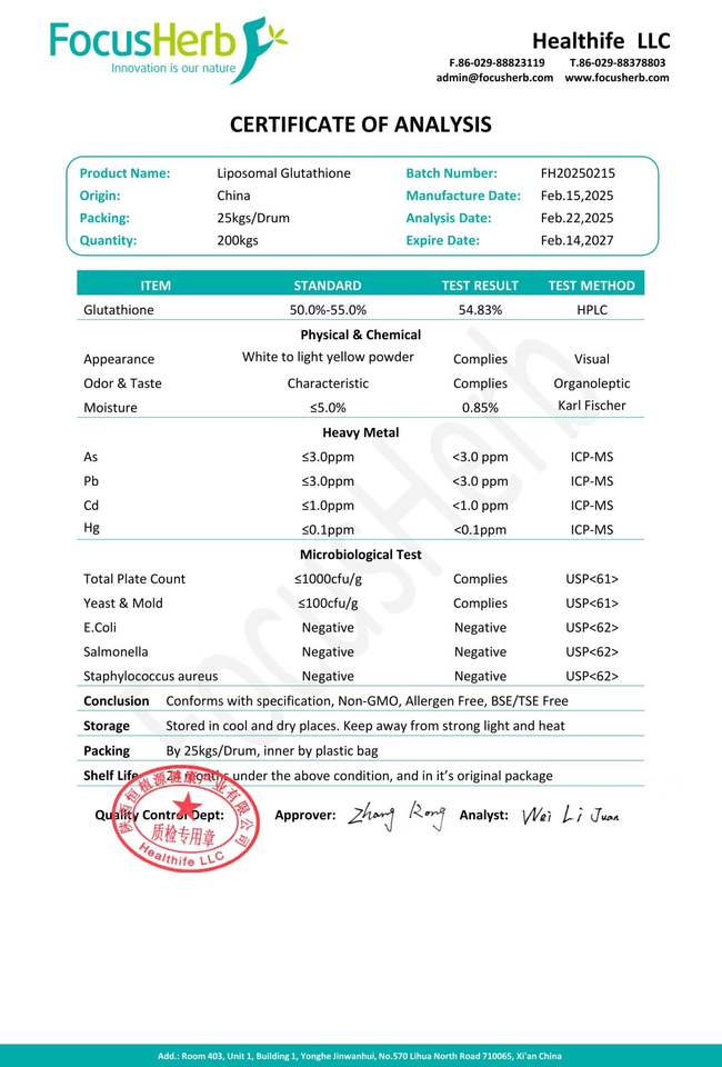 อาหารเสริมกลูต้าไธโอนไลโปโซมอล โฟกัสเฮิร์บ 50% 70% กลูต้าไธโอนไลโปโซมอล