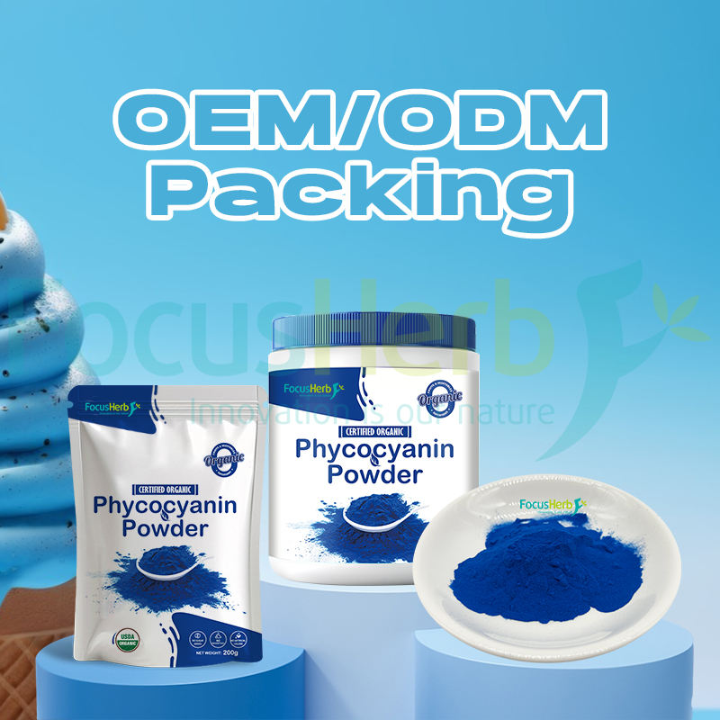 สารสกัดสาหร่ายสไปรูลิน่าธรรมชาติ เกรดอาหาร โฟกัสเฮิร์บ ผงสไปรูลิน่าสีน้ำเงิน E18 ไฟโคไซยานิน