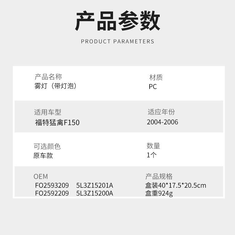 ไฟตัดหมอกสำหรับฟอร์ด เอฟ-150 แร็ปเตอร์ ปี 2004-2006 ไฟหน้าฮาโลเจน ซ้ายและขวา คู่