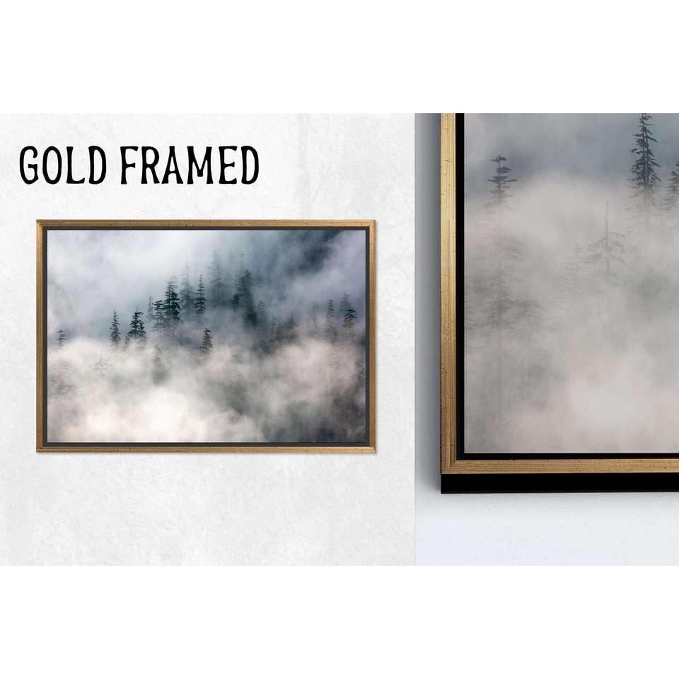 ภาพพิมพ์บนผ้าใบป่าหมอก: ภาพศิลปะตกแต่งภูเขา,1P Goldframedcanvas