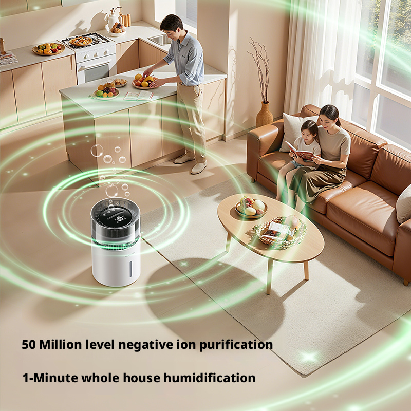 เครื่องเพิ่มความชื้นแบบไร้หมอกพร้อมประจุออกซิเจนลบเพื่อการฟอกอากาศและความชื้น เครื่องเพิ่มความชื้นแบบตั้งโต๊ะสำหรับห้องนอน