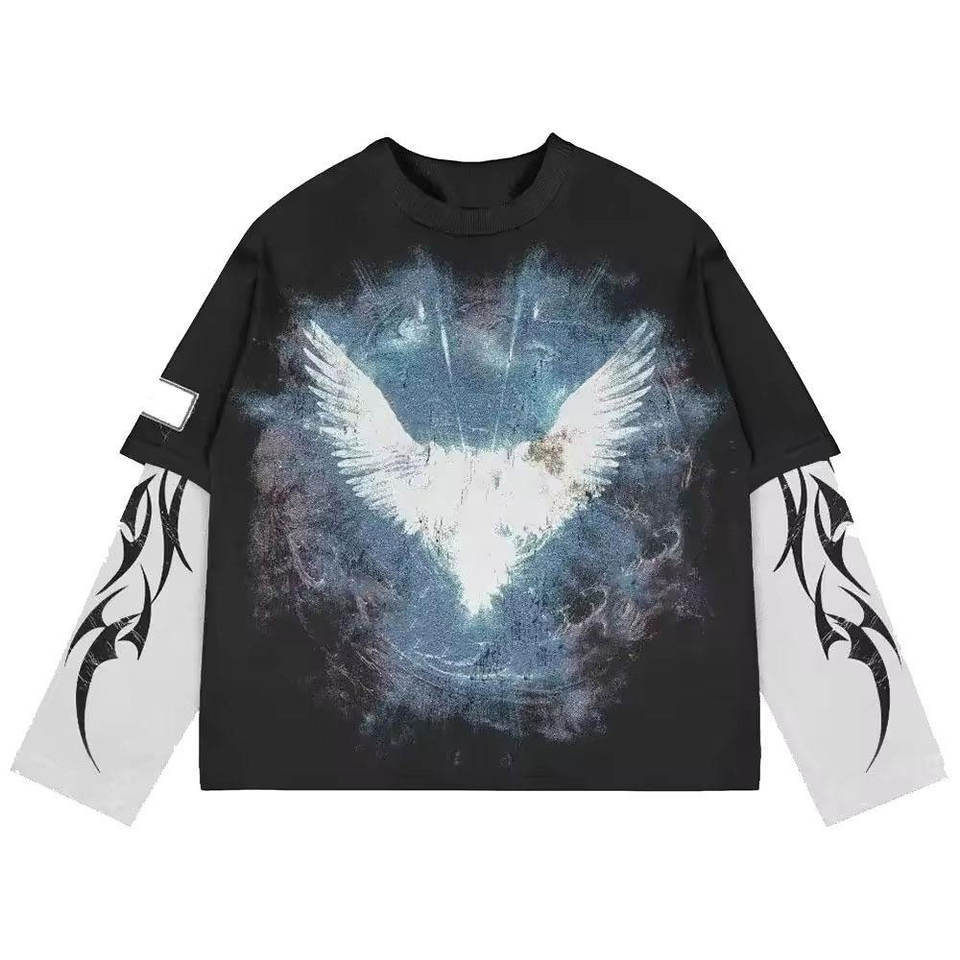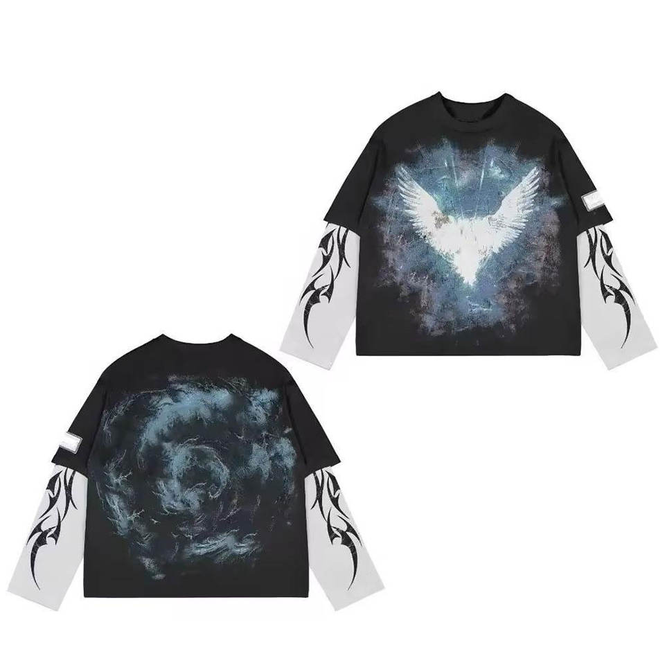 เสื้อยืดแขนสองชั้นน้ำหนักเบา แต่งลายปั๊มฟอยล์ ผ้าฝ้าย 100% ลวดลายแอพพลิเค่แบบกำหนดเอง ดีไซน์ทันสมัยแบบเลเยอร์