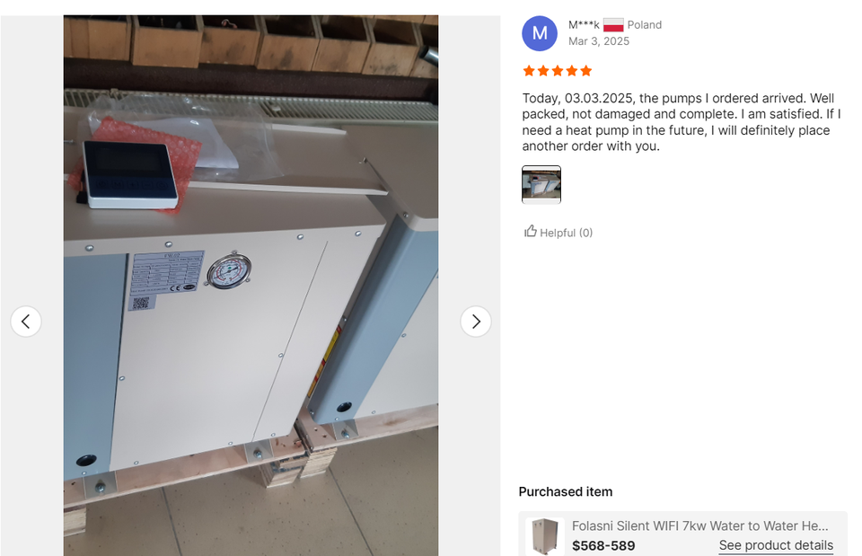ปั๊มความร้อนใต้ดิน Folansi R410a/R32 ขนาด 7 กิโลวัตต์ รุ่น FW-02 ระบบ Wifi แบบน้ำต่อน้ำ ประสิทธิภาพสูงระดับ A+++ GSHP