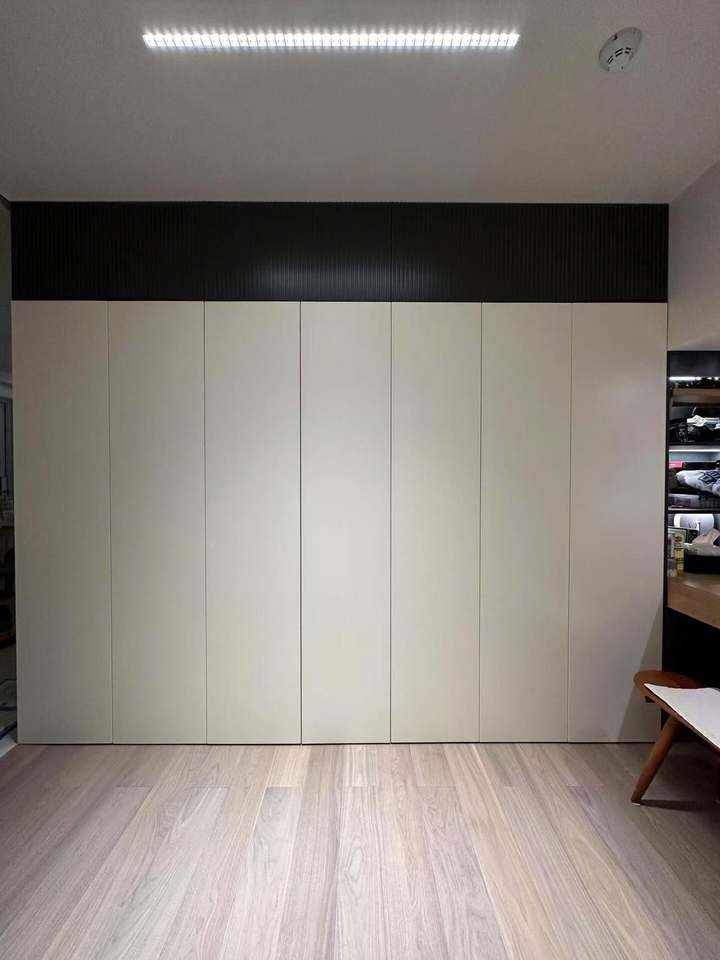 ตู้ลิ้นชักเก็บของด้านบนสีขาว1ประตู, ตู้เสื้อผ้าพร้อมชั้นวางส่วนกลาง2ชั้นและที่แขวน1ชั้นลิ้นชักด้านล่างพร้อมฝาครอบ2ประตู