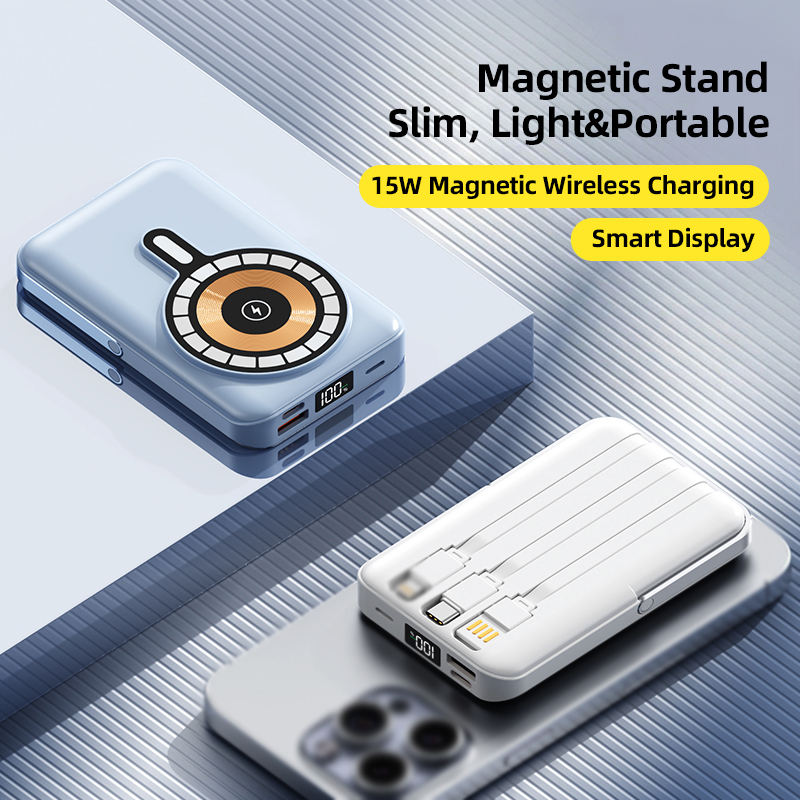 พาวเวอร์แบงค์แม่เหล็กพับได้ 10000mAh พร้อม PD 22.5W และชาร์จไร้สาย 15W สายในตัว 3 เส้น หน้าจอ LED ชาร์จเร็ว